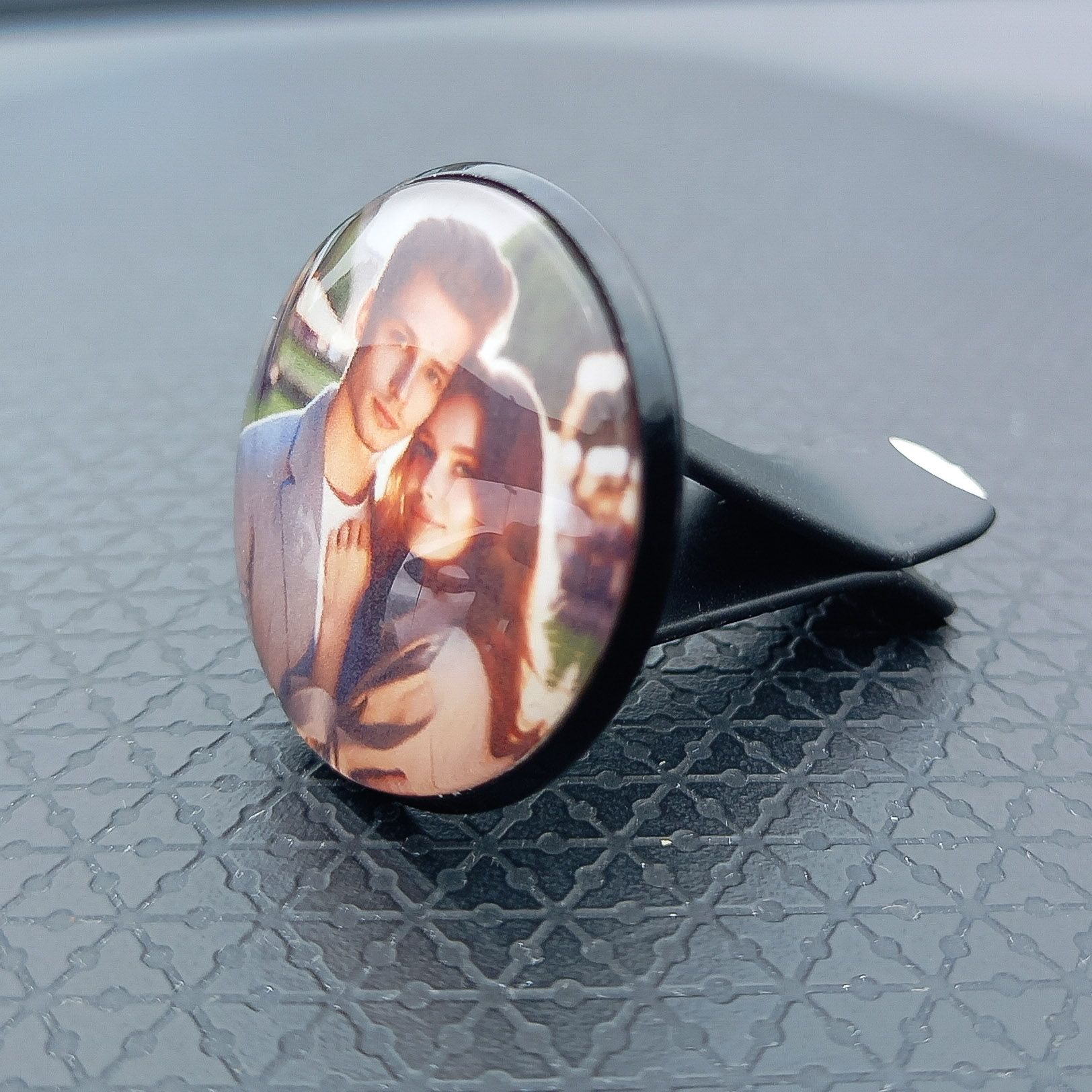 Of het nu gaat om een foto van een geliefde, huisdier of een speciaal moment: deze gepersonaliseerde autobedel met foto maakt van jouw auto een plek vol herinneringen.